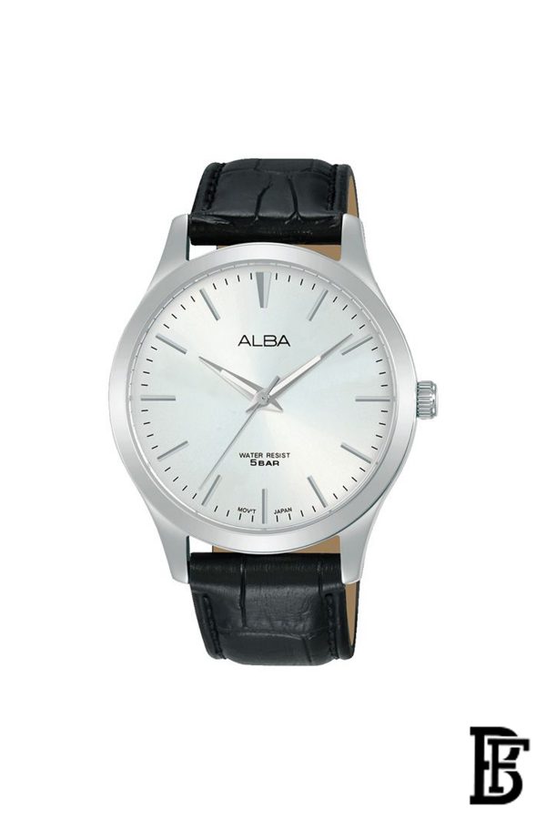 ALBA Men's Hand Watch Hand Watch is Suitable For : Men Hand Watch Collection : STANDARD Band Material : Leather Strap Band Color : Black Dial Color : Silver White Dial Case Material : Stainless Steel Case Glass Material : Mineral Crystal Glass Water Resistant Distance : Up To 50 Meter Water Resistant
