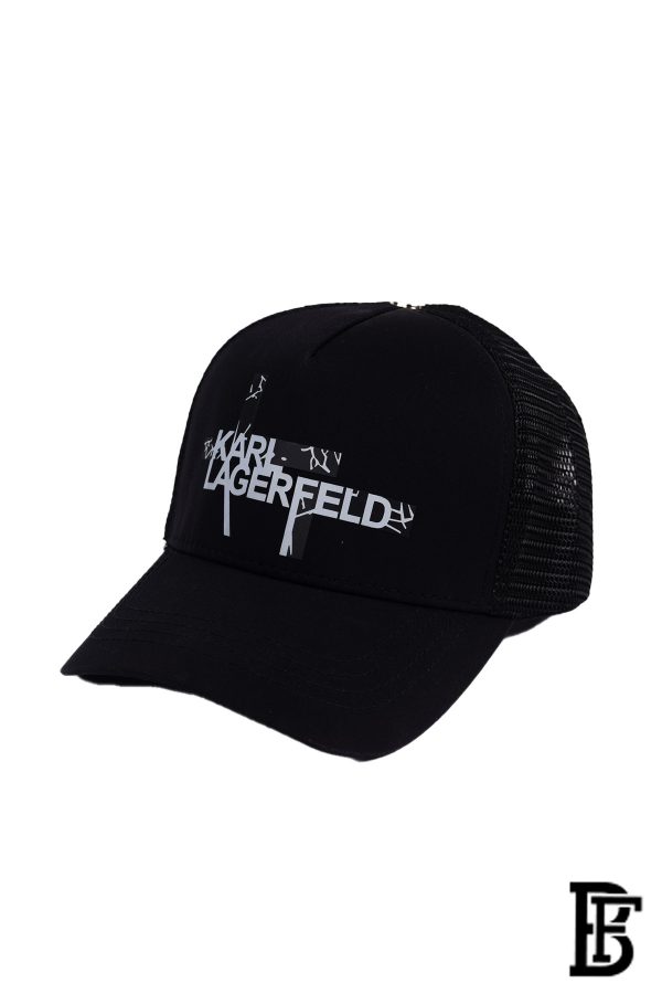 قبعة مستوحاة من KARL LAGER FELD باللون الأسود وخامة القماش بتصميم أنيق