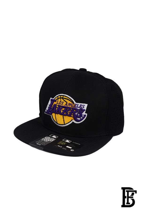 كاب مستوحى من فريق LAKERS باللون الأسود وخامة القماش بتصميم أنيق