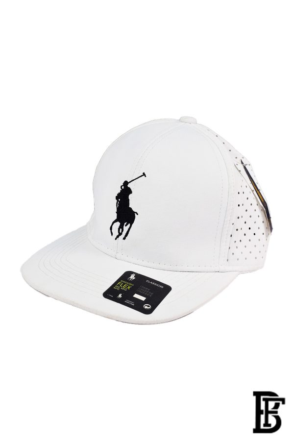 كاب مستوحى من ماركة بولو باللون الأبيض وخامة القماش بتصميم أنيق