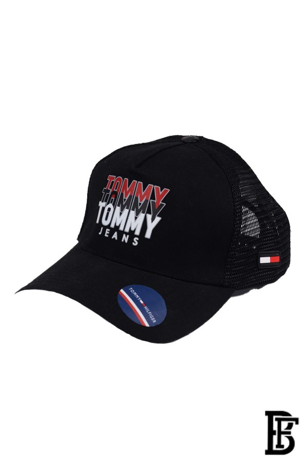 قبعة مستوحاة من TOMMY HILFIGER باللون الأسود وخامة القماش بتصميم أنيق