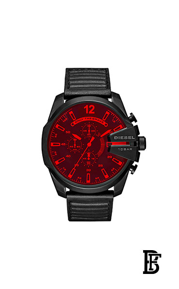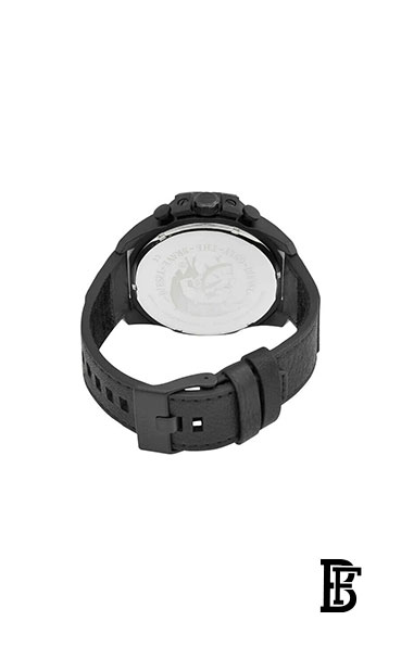 ساعة ميجا شيف سوداء IP وجلد كرونوغراف