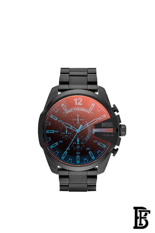 ساعة ميجا شيف سوداء IP وجلد كرونوغراف
