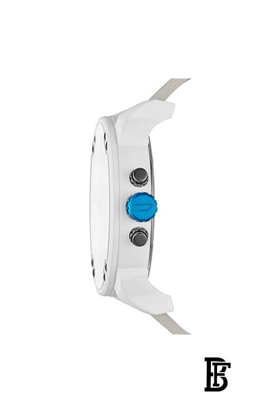 This 42mm Mr. Daddy 2.0 watch features a detailed gray dial, chronograph movement and white-and-gray leather and silicone strap.