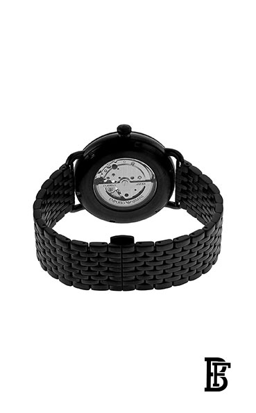 تتميز هذه الساعة مقاس 43 ملم بقرص هيكلي أسود مع مؤشرات باللون الذهبي الوردي، وحركة متعددة الوظائف وسوار شبكي أسود من الفولاذ المقاوم للصدأ.