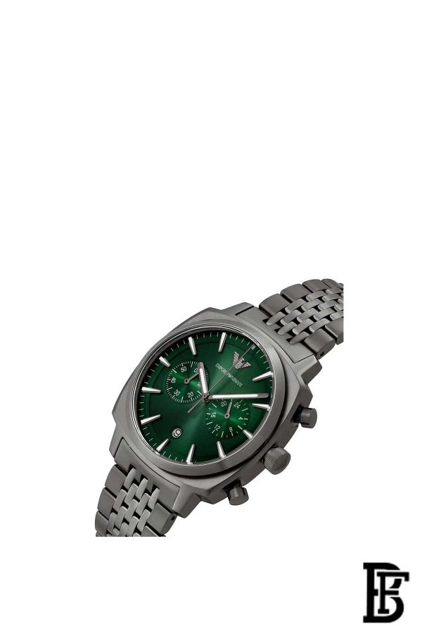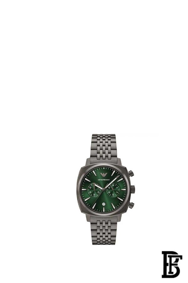 ساعة امبوريو ارماني الأصلية للرجال موديل AR11689لون أخضر و سوار معدني فضي.