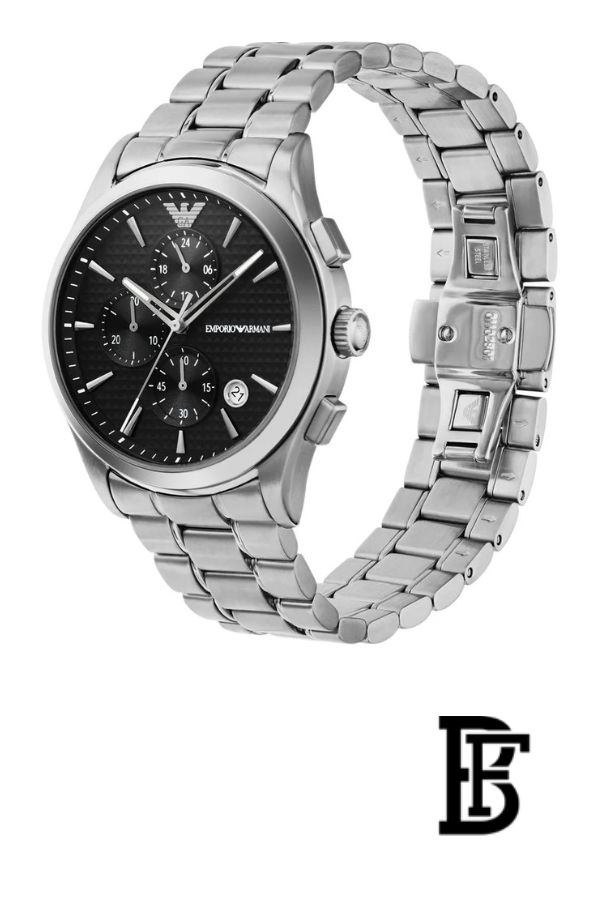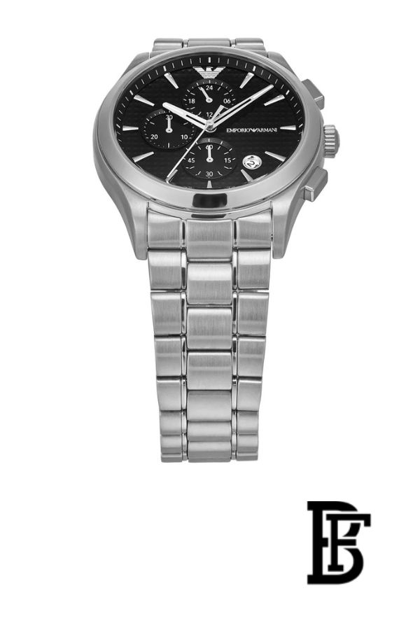 Emporio Silver Steel Watch with Black Dial and Chronograph For Men AR11602