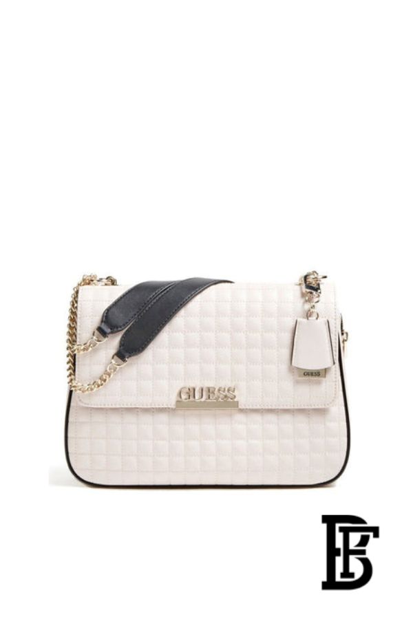 Elevate your elegance with the GUESS GS Matrix Convertible Shoulder Bag — a must-have statement piece for the modern woman. Designed with refined quilted detailing, this bag effortlessly blends contemporary sophistication with timeless luxury.Crafted from genuine leather, it features a structured silhouette with a sleek finish, complemented by gold-tone chain straps and polished hardware. The flap closure is adorned with the iconic GUESS metal logo, adding a signature designer touch.Spacious and well-organized inside, this bag allows you to carry your daily essentials in style — whether you're heading to a formal event, evening outing, or elevating your everyday look.