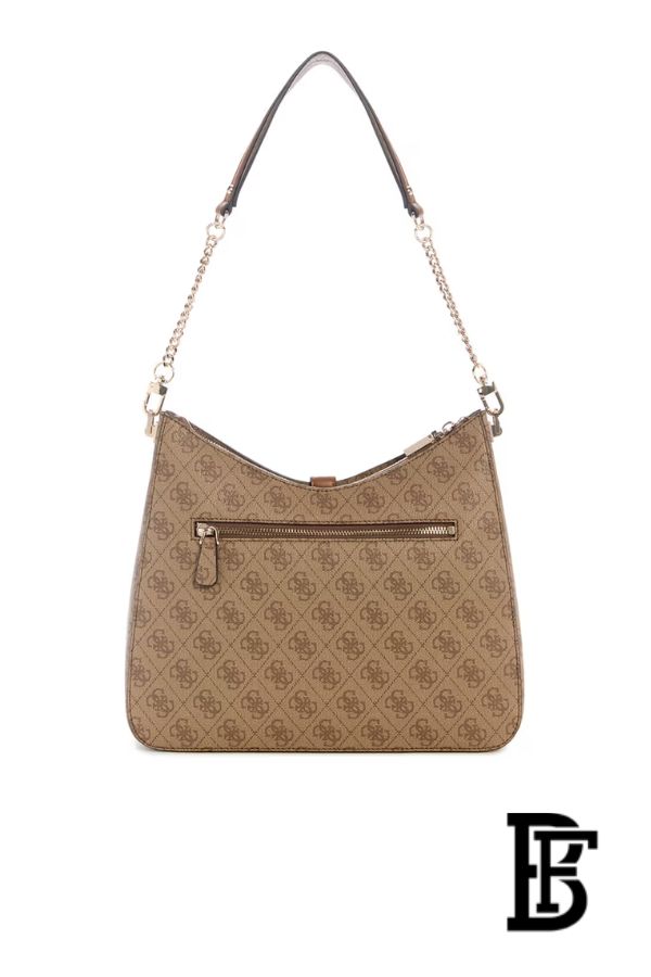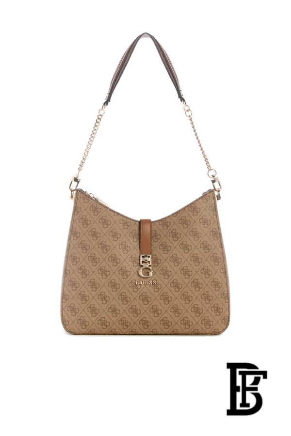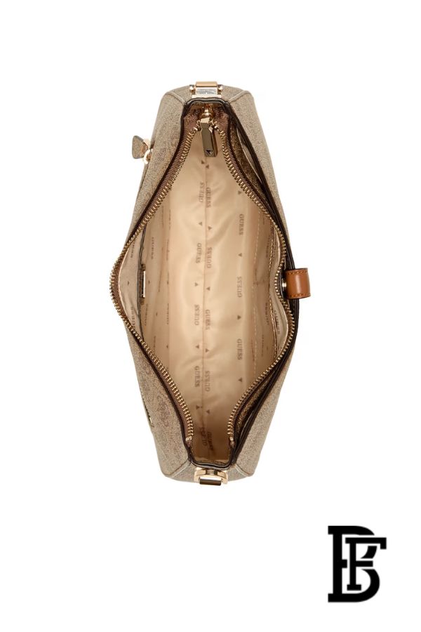 شنطة Guess Zamira Hobo تجمع بين الأناقة العصرية والعملية اليومية. تأتي بتصميم هوبو ناعم مع نقش شعار GUESS المونوغرام باللون اللاتيه الأنيق، ومصنوعة من خامة بولي يوريثان عالية الجودة لمظهر راقٍ ومتانة ممتازة. توفر مساحة داخلية واسعة لحمل الأساسيات اليومية، مما يجعلها مثالية للعمل، التسوق، أو الخروجات اليومية، مع لمسة أنيقة تعكس هوية GUESS المميزة.