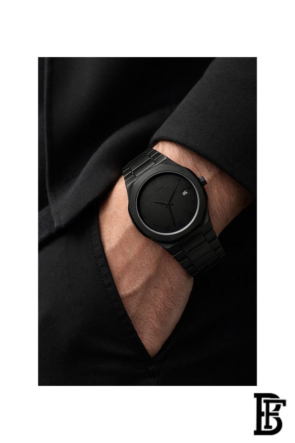 قرص أسود أنيق بعلامات دقيقة وعرض تاريخ عملي، لتجمع بين الجمال والوظيفة في وقت واحد.