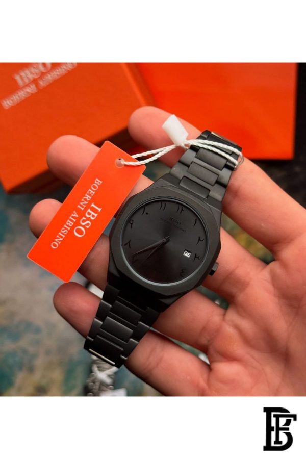 تصميم رجالي فخم باللون الأسود المطفي يعكس الذوق الراقي والشخصية الواثقة. تأتي ساعة IBSO بهيكل معدني متين وسوار ستانلس ستيل يمنحك إحساسًا بالفخامة والصلابة في كل تفصيلة.