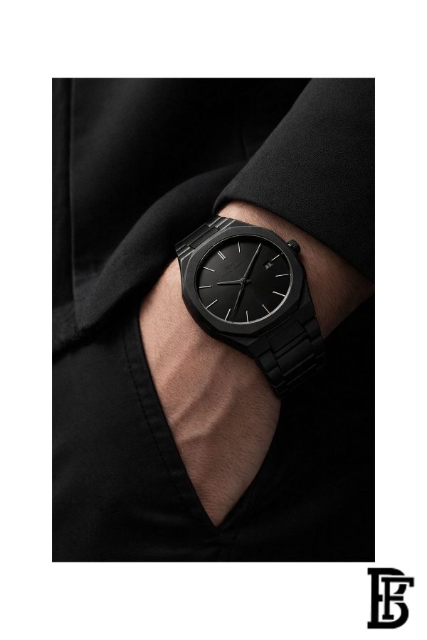 قرص أسود أنيق بعلامات دقيقة وعرض تاريخ عملي، لتجمع بين الجمال والوظيفة في وقت واحد.