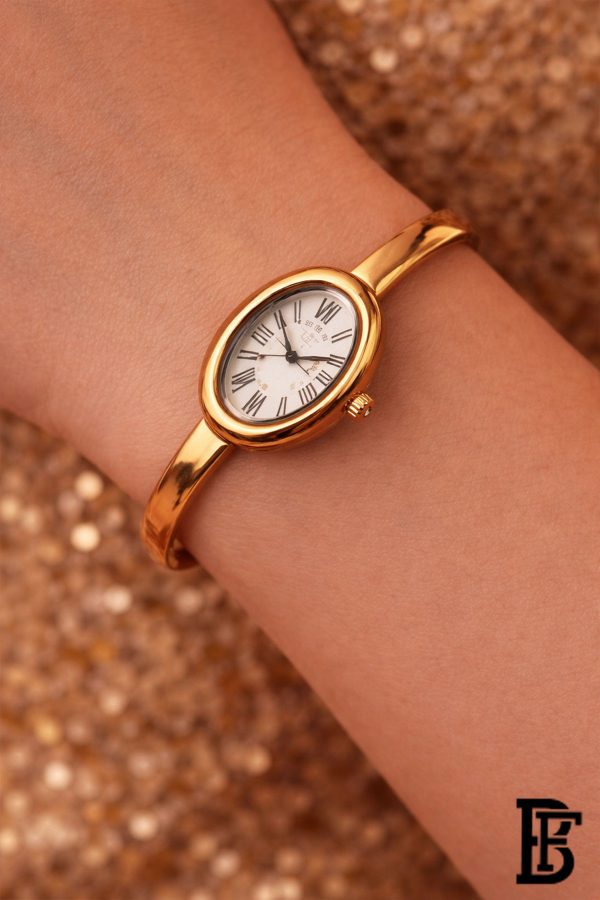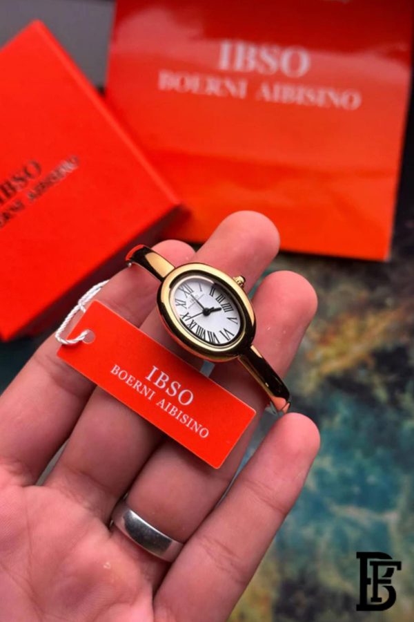 The IBSO watch boasts an elegant design that blends simplicity and luxury, making it perfect for any woman seeking a classic touch to complement her everyday or formal look.The white dial with clear Roman numerals offers a sophisticated appearance and easy time reading, while the gold bezel adds a touch of luxury that suits all tastes.