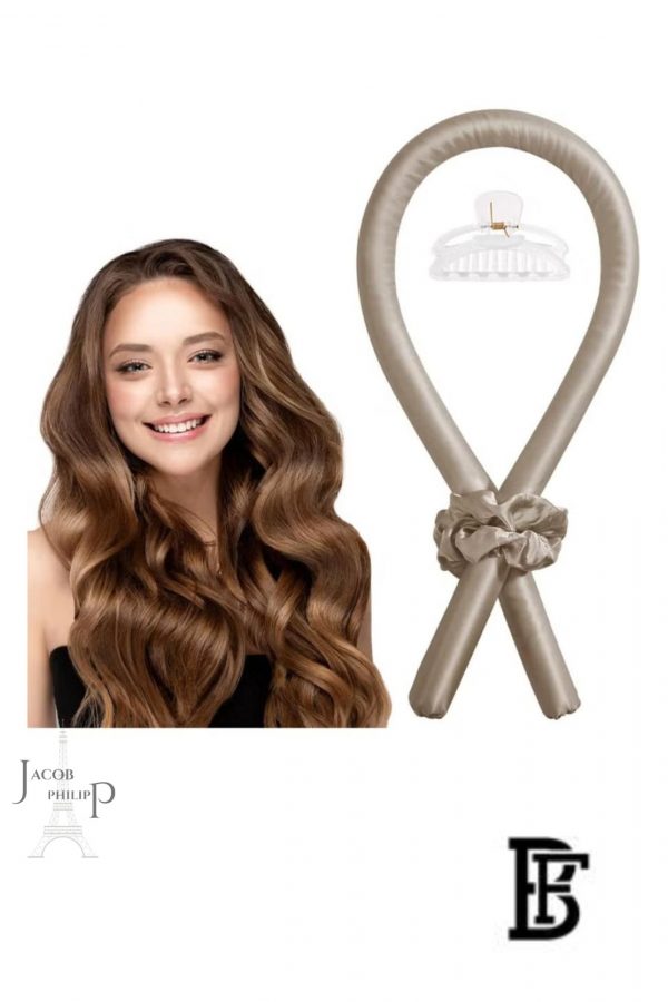 Jacob & Philipp Heatless Curling Headband for Short Hair, Heatless Curling Barrel Set, Satin Curling Band with Hair Tie and Hair Band for Natural Curls in Beige