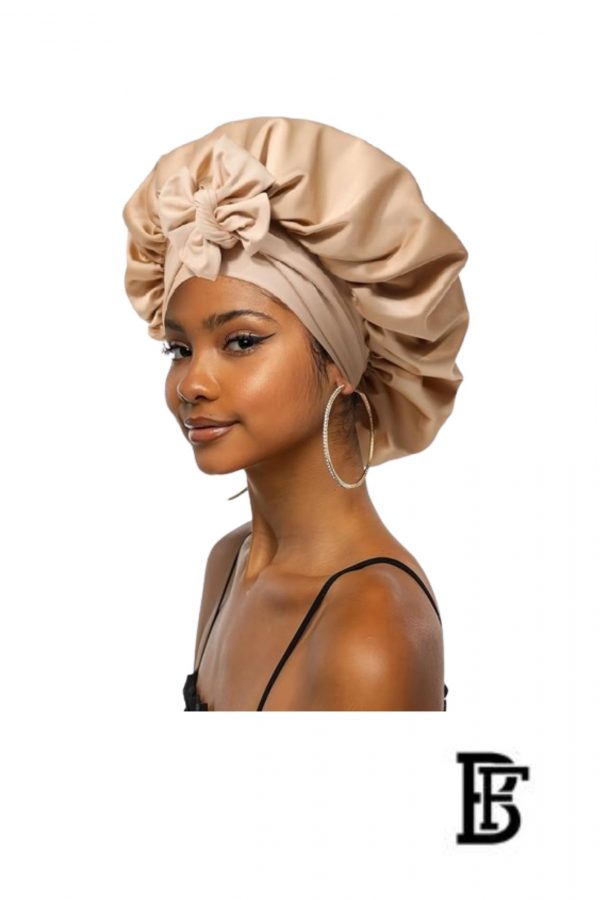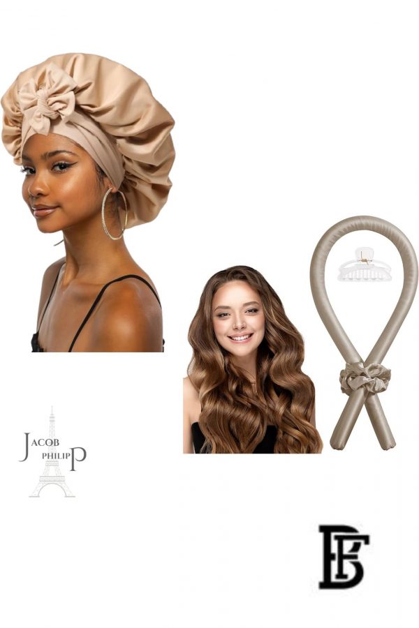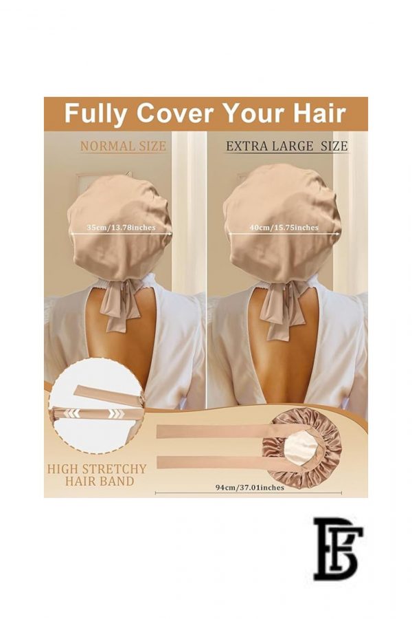 Jacop&Philipp Elegant Silk Sleep Bonnet for Women, 1 Piece Satin Sleep Bonnet, High-Tech Care, Can Be Worn While Sleeping, Plus Sponge Headband for Heatless Curling at Night for a Gorgeous Natural Look, Beige