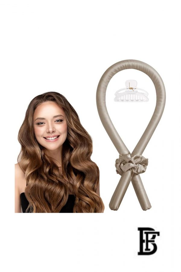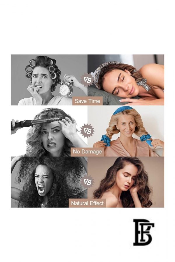 Silk Sleep Bonnet Satin Bonnet for Women and Men Satin Bonnet for Curly Hair for Elegant and Cool Heatless Hairstyle with Headband for Women, Heatless Wave Band with Hair Clips and Hair Tie, Silk Hair Rollers for Curling Hair Beige