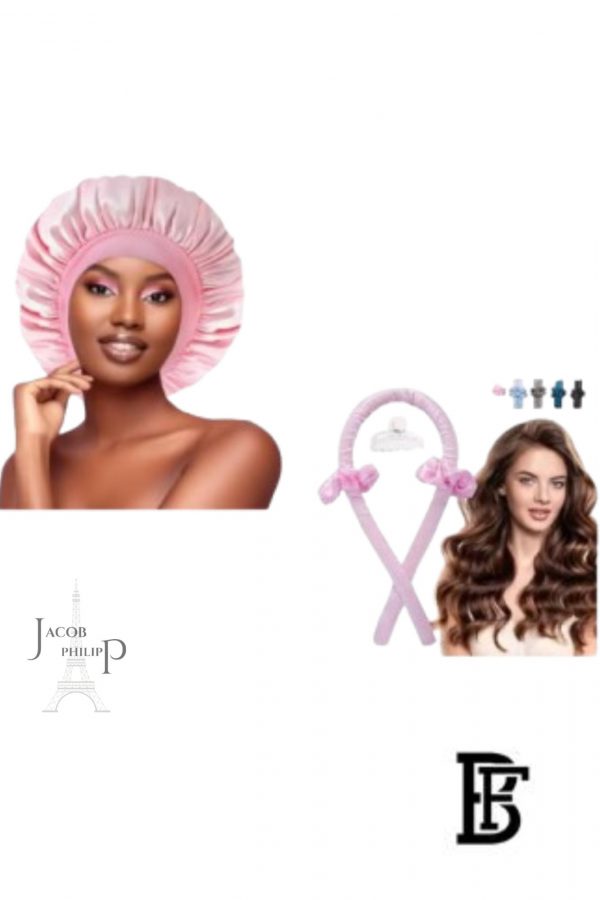 بونيه نوم حرير بونيه ساتان للنساء والرجال بونيه ساتان للشعر المجعد لتصفيف أنيق ورائع بدون حرارة مع عصابة رأس للنساء، شريط مموج بدون حرارة مع مشابك شعر وربطة شعر، بكرات شعر حريرية لتجعيد الشعر