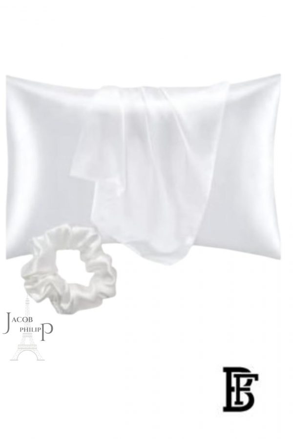 Jacop&Philipp Single Layer Elegance Satin Night Pillowcase A piece of luxury and softness Elegant Satin Pillowcase for Curly Hair with White Satin Hair Tie