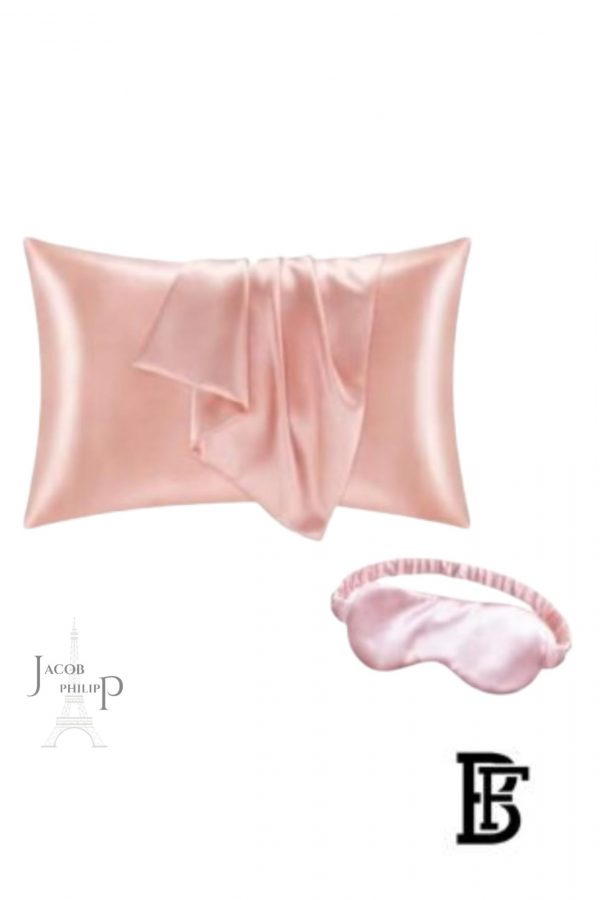 غطاء وسادة من الساتان أحادي الطبقة من Jacop&Philipp وقناع نوم حريري للعين مع حزام مطاطي للنوم والسفر والقيلولة، غطاء ناعم للعين باللون الوردي