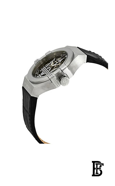 Maserati is one of the most fascinating car production companies with a long history of appeal, tradition and sporting success. It was founded in Bologna by Alfieri Maserati in 1914 and established as a mechanical workshop named “Officine Alfieri Maserati.” In 1926, Maserati was transformed from a workshop, modifying or developing the vehicles of other companies, into a company designing, building, and selling its own. The Maserati brothers adopted the symbol of the Trident and made it the logo, synthesising the new company in a single image. At the end of the 1930s, following the acquisition of the company by Adolfo Orsi, a businessman from Modena, Maserati moved to Modena to the current site in Viale Ciro Menotti.Maserati has been part of the Fiat Group since 2005 and is a prestigious brand in the sector of sports and luxury saloon cars. It can be found in more than 60 countries, where it continues to bear witness to Italian sophistication, elegance, and style around the world. Today, the factory in Viale Ciro Menotti, Modena, and the Maserati Avv. Giovanni Agnelli Plant, inaugurated in January 2013 in Grugliasco, are able to guarantee the highest technical and quality standards.The Maserati watch collection, featuring sleek silhouettes and fine craftsmanship, offers the same high quality and cutting-edge design synonymous with the Maserati brand.Men's Maserati watch R8821108001, with MVT.SEAGULL TY2809 movement from Potenza Collection, has a genuine leather strap and a round stainless steel case that measures 40 mm, equipped with a mineral crystal. Water Resistant 100 m (330 ft). The watch comes in its Maserati original box, that also contains the warranty and the user's manual.