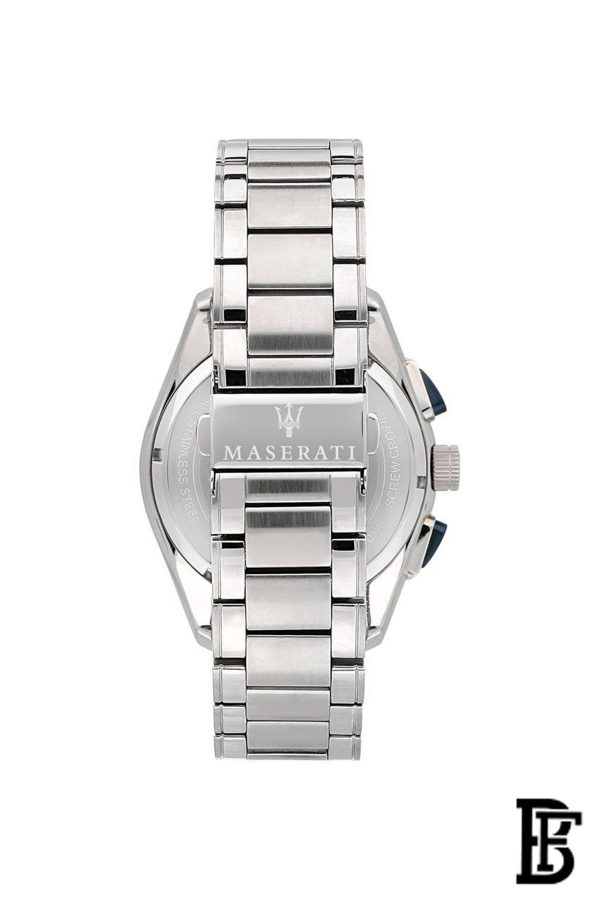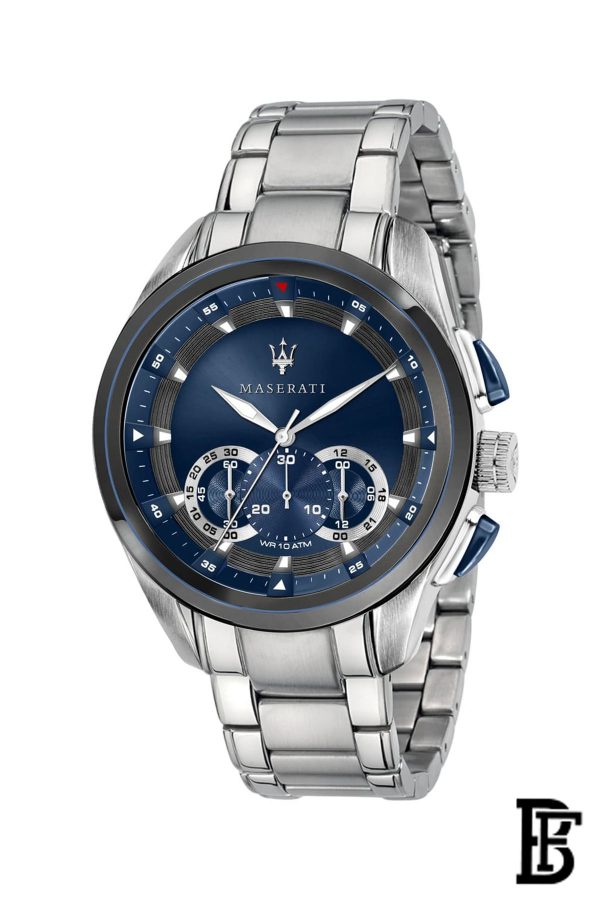 Maserati men's watch, ref. R8873612014, TRAGUARDO Collection, made of steel, MOV.JS50 H6 quartz movement, chronograph. This wrist watch is featured with a refined Stainless steel strap, with fold-over clasp with safety. The round case measures 55x45mm, features a blue dial and a mineral crystal. Water resistant up to 10 ATM. This watch is delivered with its Maserati official presentation box, with 2-years warranty. Maserati watches: timepieces that skilfully combine Italian design and Japanese mechanics, creating models born to enter the myth. Maserati Traguardo Collection: models with a sporty touch, highlighted by the multilevel dial with the inevitable in-line counters, clear reference to the on-board instrumentation of Maserati cars. A perfect combination of elegance, Italian style, passion for competition and great versatility in applying Maserati know-how to the most fashionable accessories.