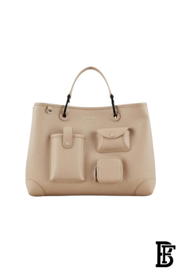 MyEA Bag is Emporio Armani’s ultimate iconic bag: choose your style and embellish it with accessories that reflect who you are. Deer-print medium handbag with magnetic closure and screen-printed logo. Embellished with branded carabiners and functional external multi-pockets. Matching internal pouch with zip. Comes with a detachable shoulder strap. Measurements: 42 x 29 x 14 cm.