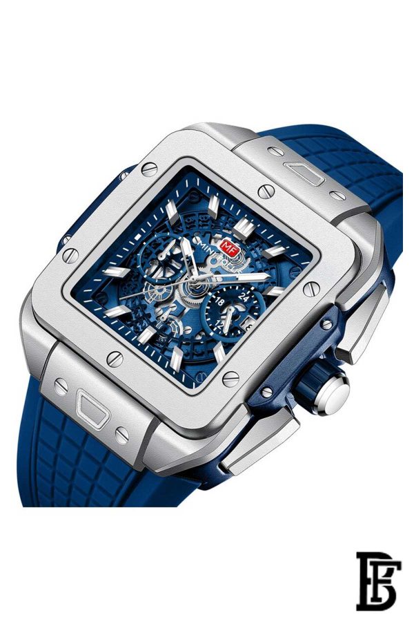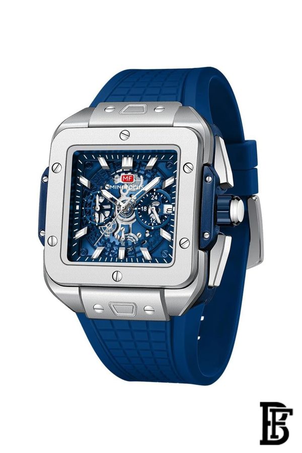 ساعة MF MINI FOCUS للرجال بتصميم مربع أنيق (كرونوغراف/مضادة للماء/مضيئة/تقويم) بسوار سيليكون وساعة كوارتز للرجال