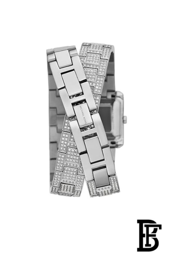 ساعة مايكل كورس إيمري الأصلية للنساء MK4836، مينا أبيض، سوار معدني فضي. صناعة يابانية، مع علبة مايكل كورس الأصلية وحقيبة.