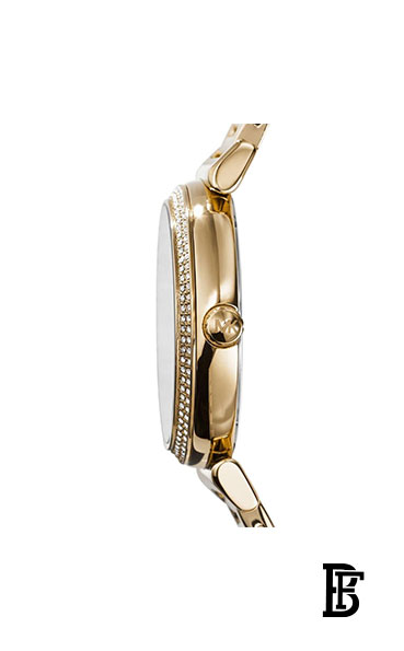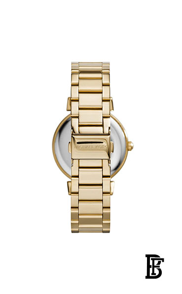 تضيف الحلقة العلوية اللامعة والميناء المزخرف لمسة من السحر إلى ساعة مايكل كورس المصنوعة من الفولاذ المقاوم للصدأ باللون الذهبي.