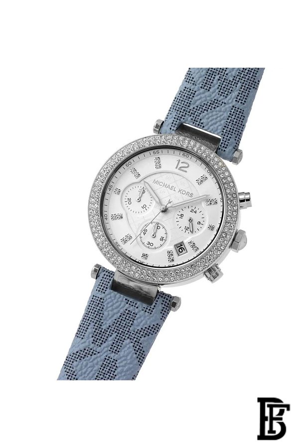 Original Michael Kors Watch For Women Parker MK6936 With White Dial Polyurethane Chloride Strap with Blue color