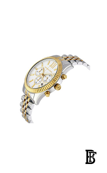 ساعة مايكل كورس بلونين ستانلس ستيل بمينا ابيض للرجال MK8344