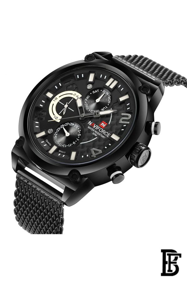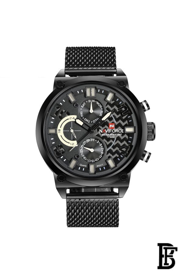 نافيفورس NF9068 BWB ساعة يد رجالية من الفولاذ المقاوم للصدأ