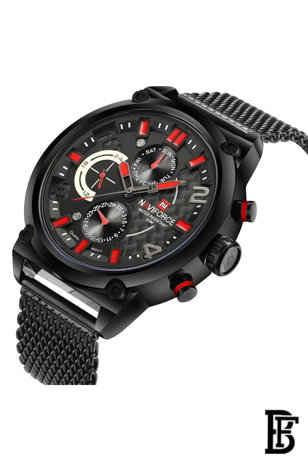 نافيفورس NF9068S B/R/B ساعة يد رجالية من الفولاذ المقاوم للصدأ