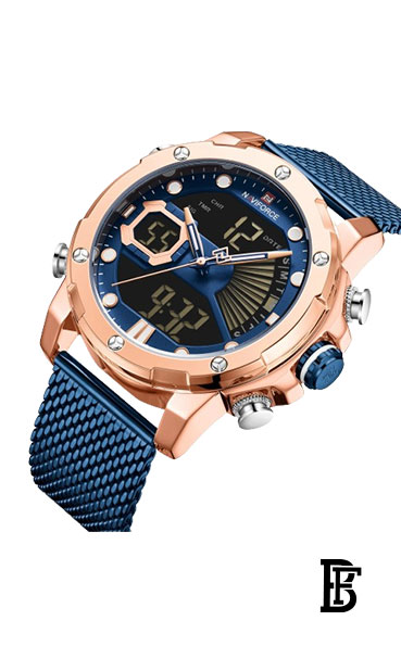 نافيفورس NF9172 RG/BE/BEساعة يد تناظرية من الفولاذ المقاوم للصدأ للرجال