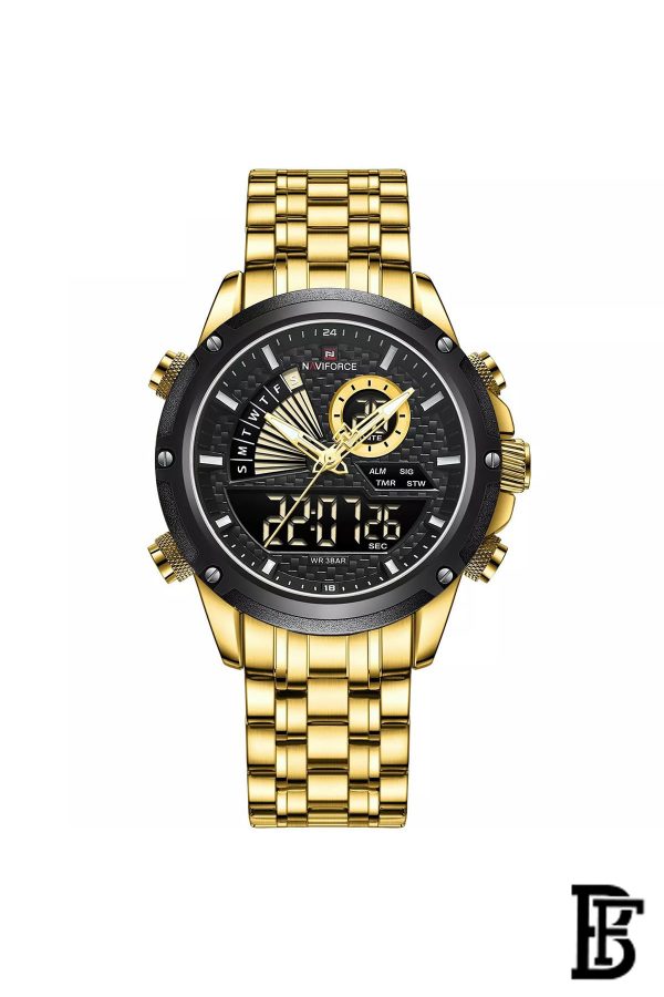 نافيفورس NF9205 G/B ساعة يد تناظرية للرجال من الفولاذ المقاوم للصدأ