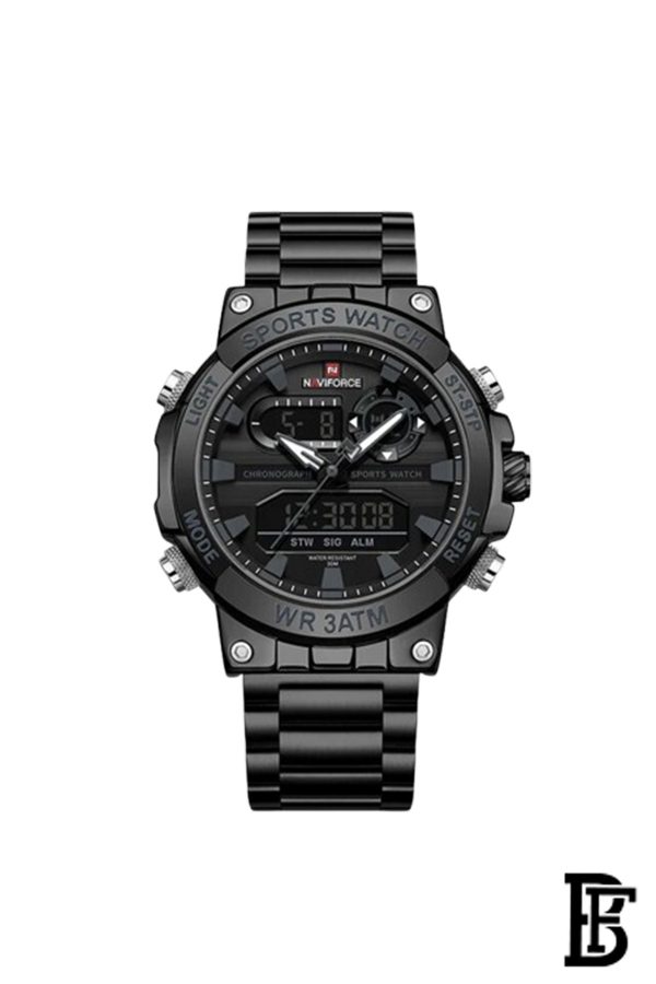 نافيفورس NF9237 B/GY/B ساعة يد تناظرية للرجال من الفولاذ المقاوم للصدأ