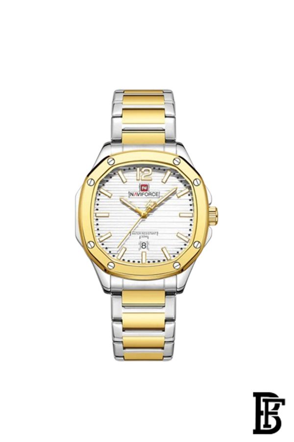نافيفورس NF9243S G/W ساعة يد تناظرية للرجال من الفولاذ المقاوم للصدأ