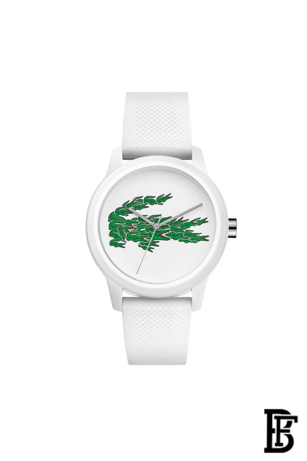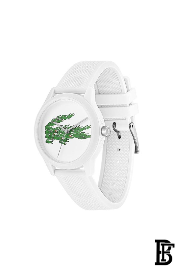 ساعة لاكوست الأصلية للرجال 2011039 بقرص أبيض وحزام مطاطي أبيض اللون. ماكينة يابانية