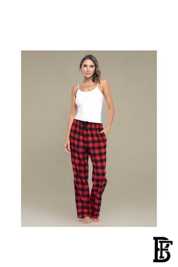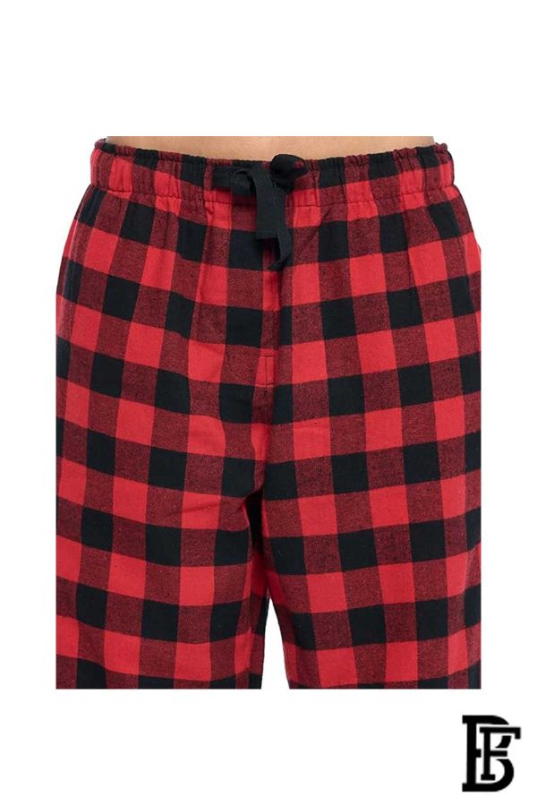 بنطلون بيجامة منقوش باللونين الأحمر والأسود، بنطلون بيجامة منقوش، ملابس نوم، بنطلون استرخاء، بنطلون بيجامة برباط، قيعان بيجامات مع جيوب وأزرار