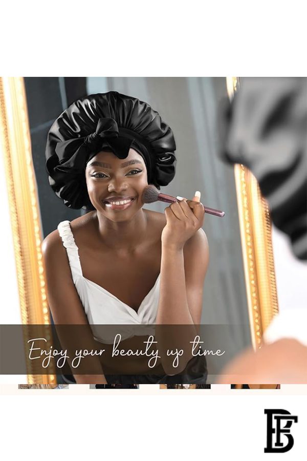 غطاء رأس ساتان من Jacob & Philipp، غطاء رأس حريري للنوم، أسود، طبقتان من الساتان BH B1