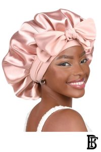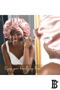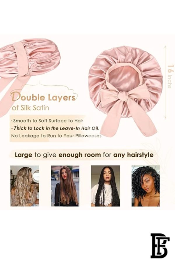 غطاء رأس ساتان من Jacob & Philipp، غطاء رأس حريري وردي للنوم، طبقتين ساتان، BH P1