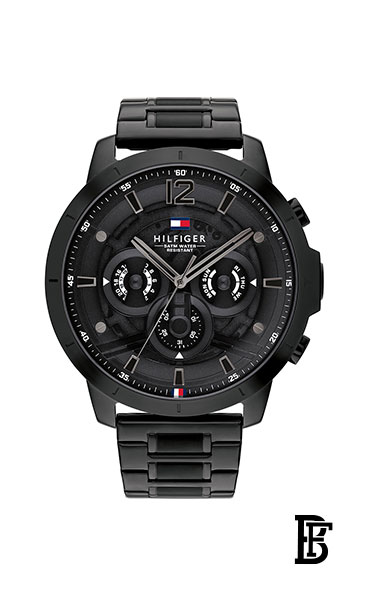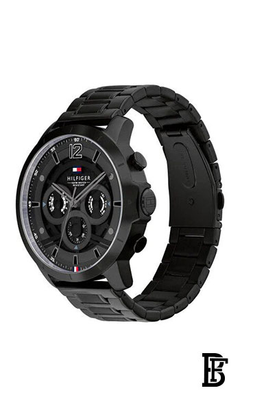 Distinctive and Daring: With a bold, exposed, dimensional dial and screw details, the Tommy branding elements throughout make this watch a stand-out. Quality Materials: Men's stainless steel case and link bracelet, navy dial with Arabic index. Quartz Multifunction: It’s a battery-powered watch that sends energy through a quartz crystal. It is typically built into three separate dials for the day of the week, date of the month and 24-hour time.