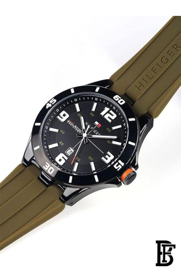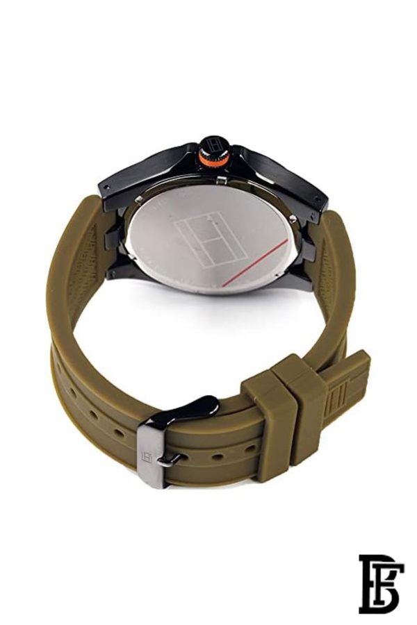 Stainless steel case with a green rubber strap. Uni-directional rotating bezel. Black dial with luminous hands and index hour markers