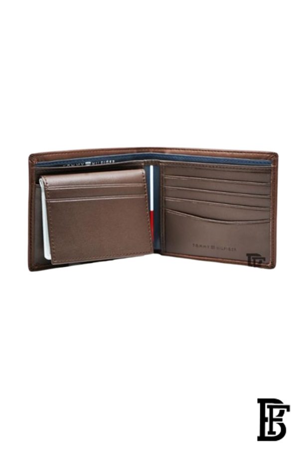 محفظة تومي هيلفيغر للرجال من الجلد العالمي للعملات المعدنية - بني