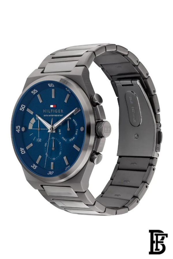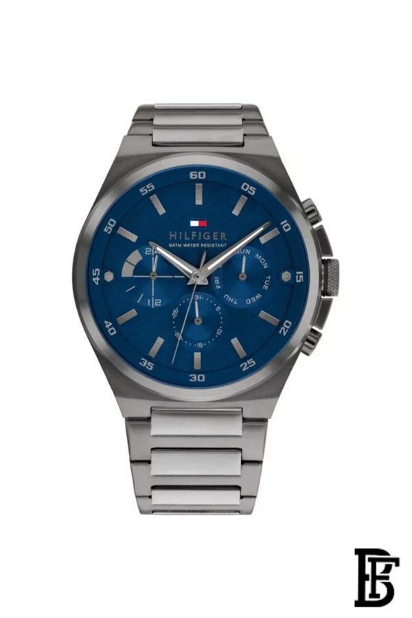 This Tommy Hilfiger watch has a case made of stainless steel with a diameter of 46 mm and is fitted with a metal band. Inside the case lies a Seiko Instruments Inc. movement and the watch features a Mineral crystal.