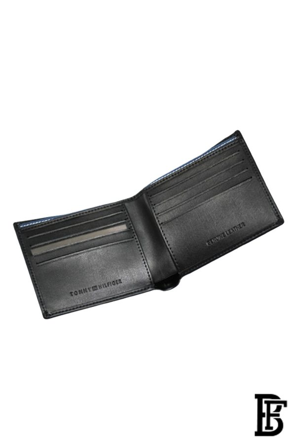 محفظة Tommy Hilfiger هي تصميم متين وجهاً لوجه ومغطى بجلد فاتح/أسود