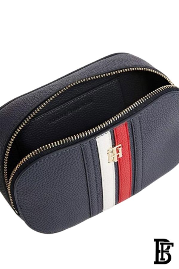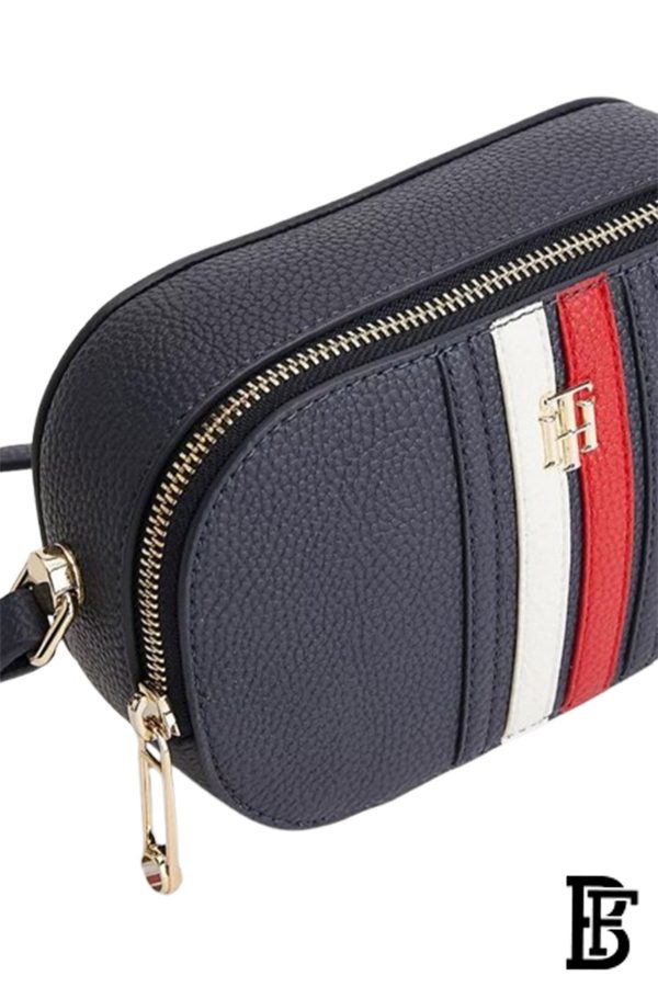 A women's crossbody bag by TOMMY HILFIGER is a stylish and practical accessory designed to offer both functionality and fashion. Typically crafted from high-quality materials like leather or durable synthetics, these bags feature a compact yet spacious design, perfect for carrying essentials such as a wallet, phone, keys, and cosmetics. They often include an adjustable shoulder strap for a customized fit, and may come with various compartments and pockets to keep items organized. TOMMY HILFIGER's crossbody bags are known for their sleek and modern aesthetic, often embellished with subtle branding and elegant hardware, making them a versatile addition to any wardrobe, suitable for both casual and formal occasions.