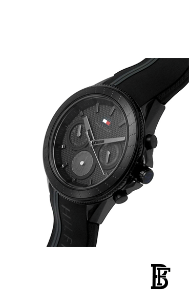 With a 44mm case the faux carbon fiber texture dial features a multifunction movement and classic tommy details