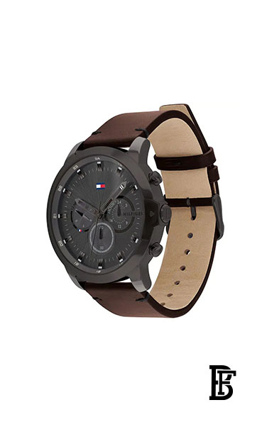 إضافة فاخرة إلى مجموعة ساعاتك، تتميز هذه الساعة من تومي هيلفيغر بإطار دائري منحني بشكل جميل ومزود بمينا كرونوغراف بالإضافة إلى نافذة لعرض التاريخ.