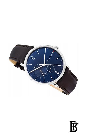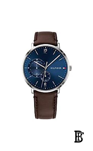 TOMMY HILFIGERMen’s Round Shape Leather Band Analog Wrist Watch 40 mm – Brown – 1791508